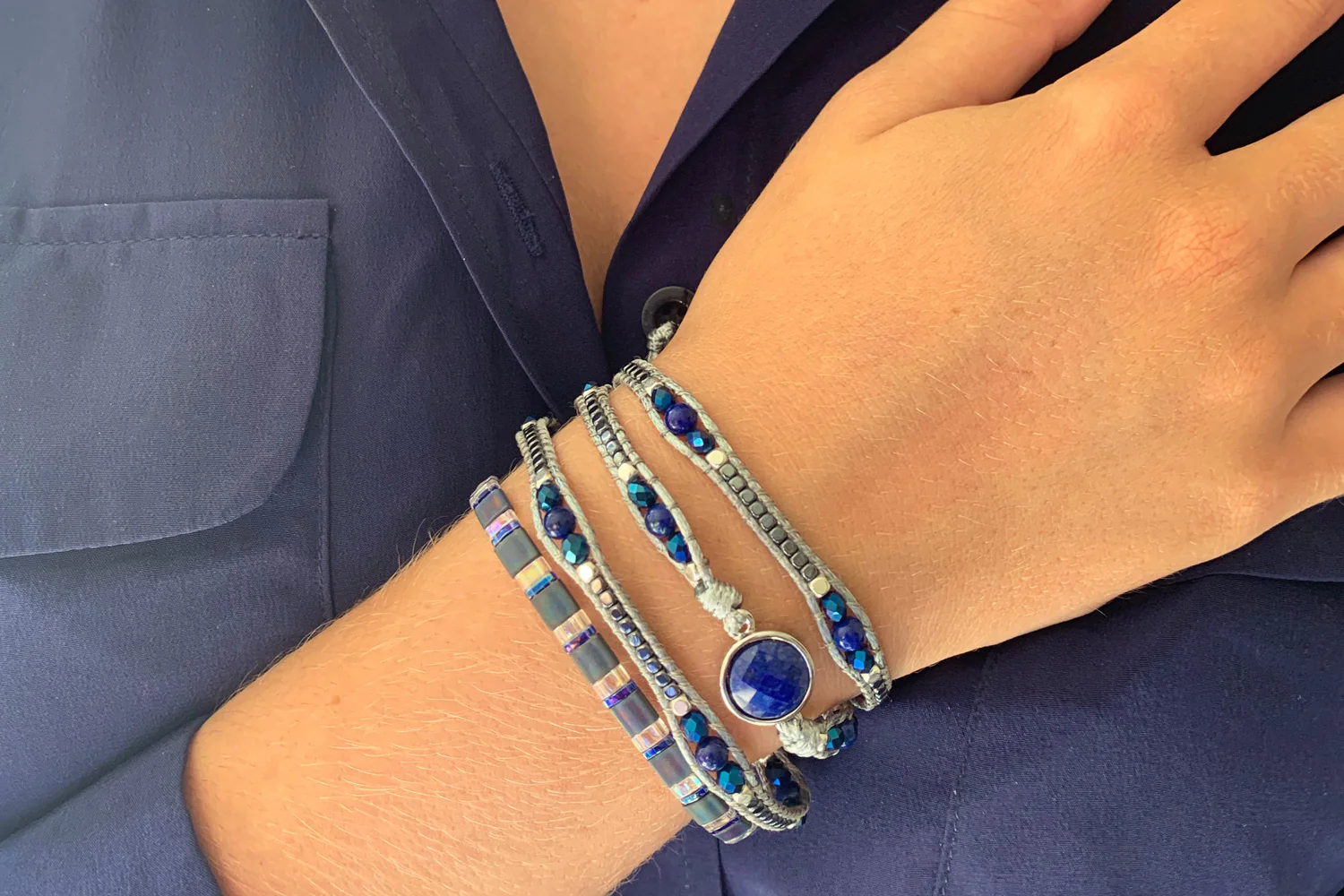 Splash a touch of vibrancy into your life with our America Blue & Silver Lapis Lazuli bracelet, a stunning statement piece from Boho Betty’s signature collection.